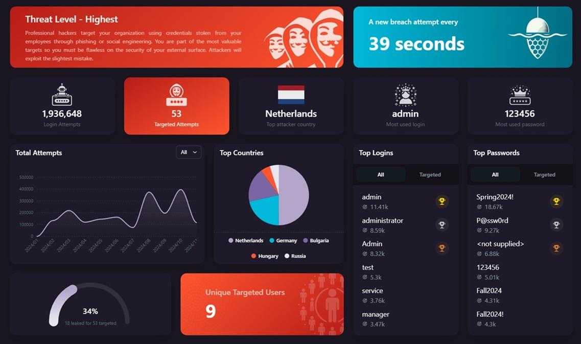Baits es una solución SaaS para la detección de compromisos de credenciales. Gracias a una innovadora tecnología de phish-back, Baits engaña a los atacantes para que devuelvan las credenciales que acaban de comprometer. Cuando un atacante intenta explotar unas credenciales robadas, Baits las intercepta y alerta a los equipos de seguridad en tiempo real. Se despliega en pocos minutos, sin cambios en la infraestructura, y ofrece visibilidad inmediata sobre intentos de acceso maliciosos. La plataforma proporciona alertas priorizadas, paneles de control orientados al CISO e integración fluida con herramientas SIEM/SOAR.